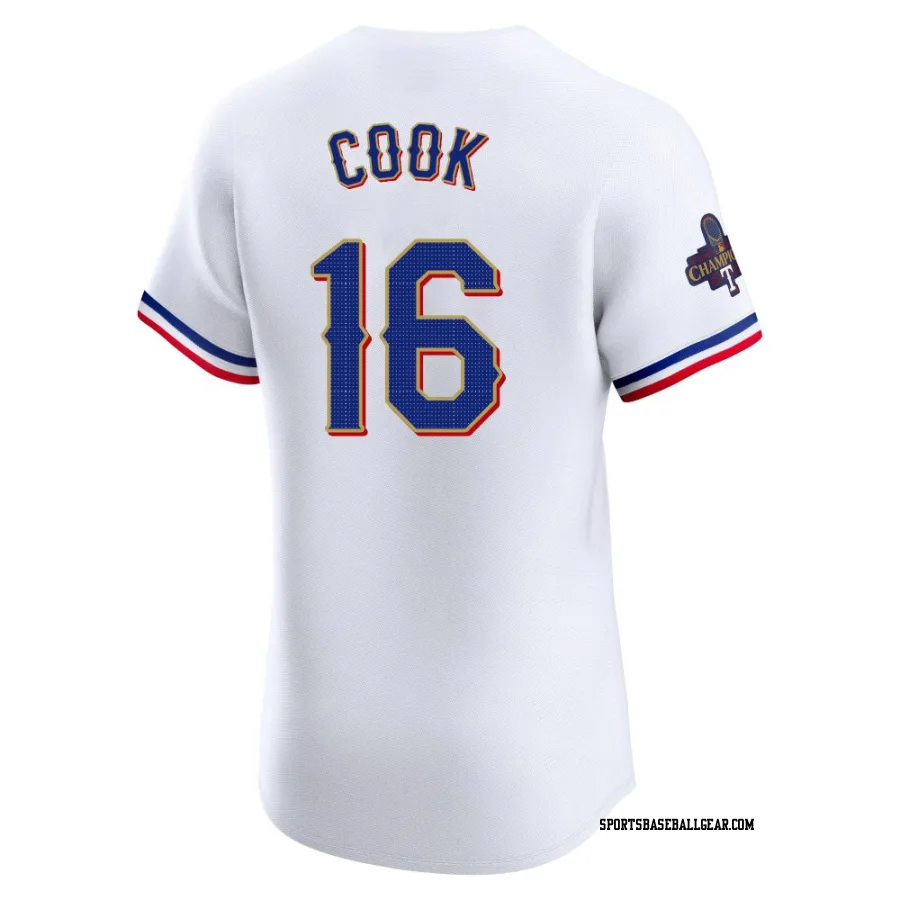 Casey Cook Men's Texas Rangers Gold Elite White 2024 Collection Jersey