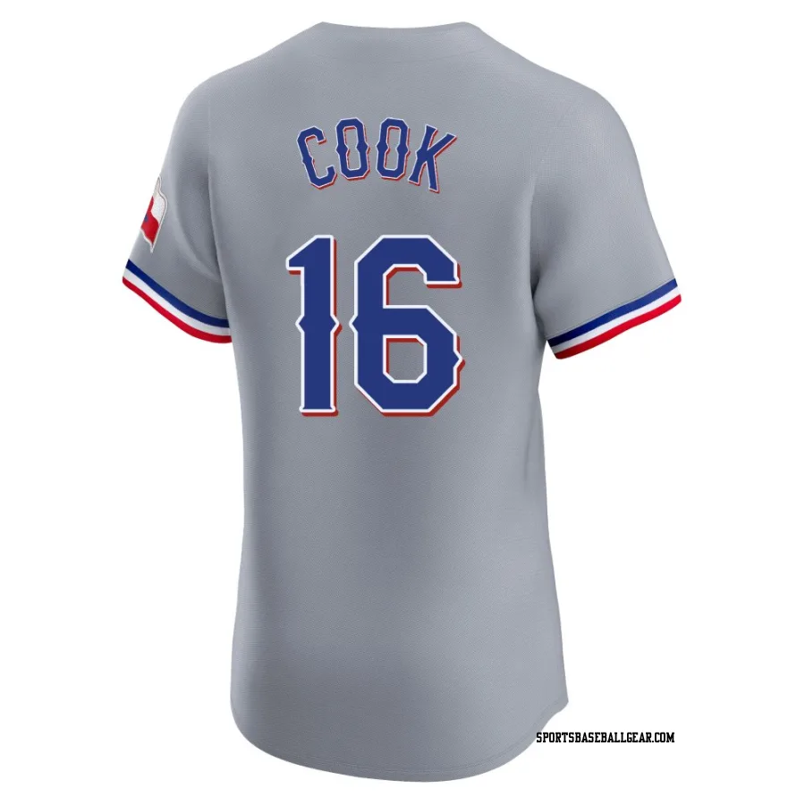 Get the Casey Cook Men's Texas Rangers Gray Elite Road Jersey, showcasing the latest design and premium quality for dedicated fans. Elevate your baseball wardrobe now!