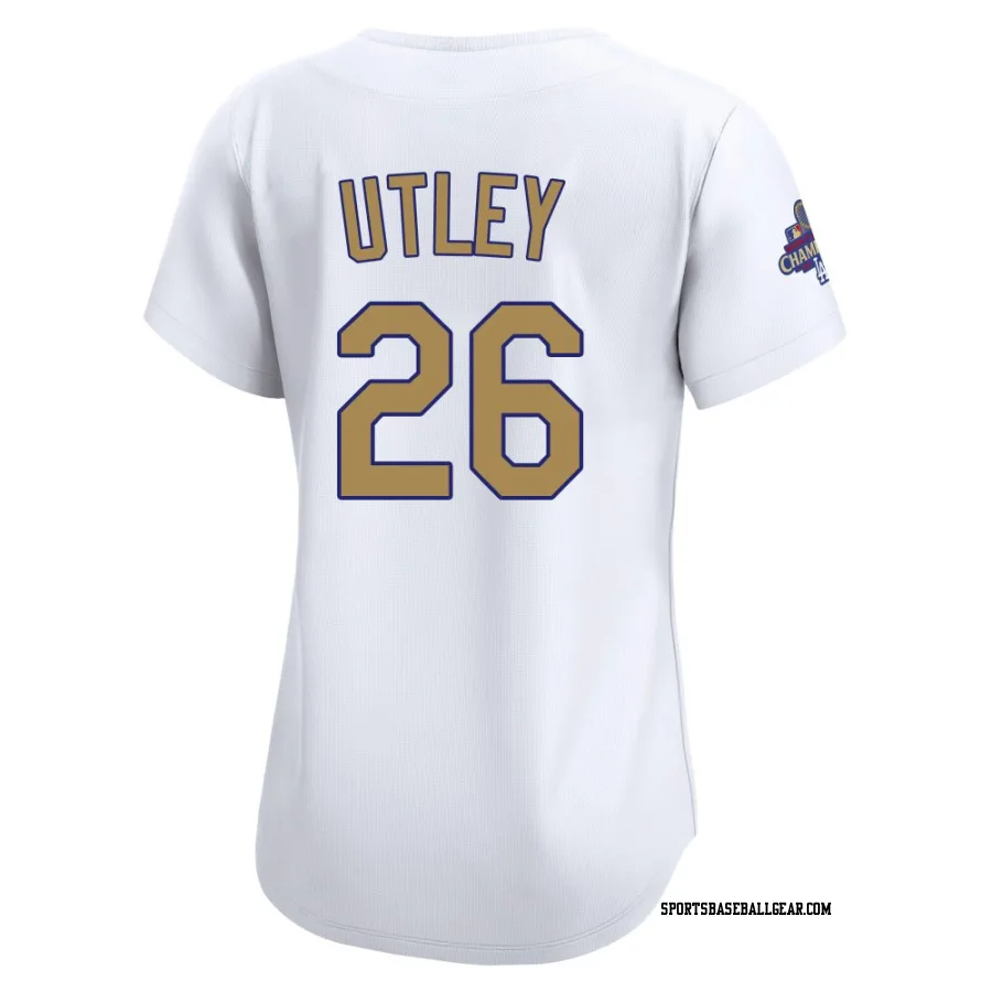 Chase Utley Women's Los Angeles Dodgers Gold Limited White 2025 Collection Jersey