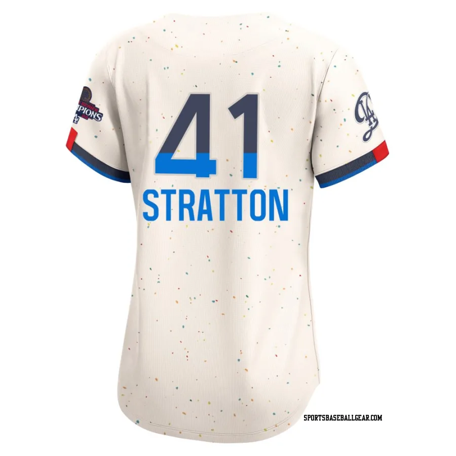 Get the Chris Stratton Women's Los Angeles Dodgers Cream Limited 2024 City Connect World Series Champions Jersey, showcasing the latest design and premium quality for dedicated fans. Elevate your baseball wardrobe now!