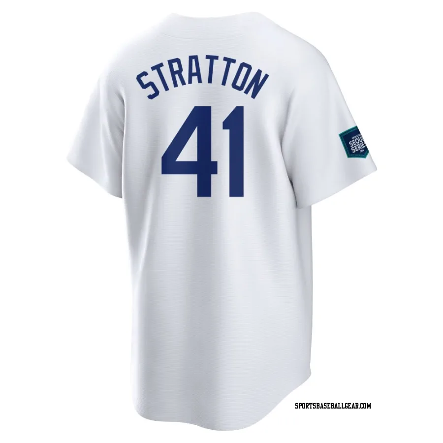 Get the Chris Stratton Youth Los Angeles Dodgers White Replica 2024 World Tour Seoul Series Home Jersey, showcasing the latest design and premium quality for dedicated fans. Elevate your baseball wardrobe now!