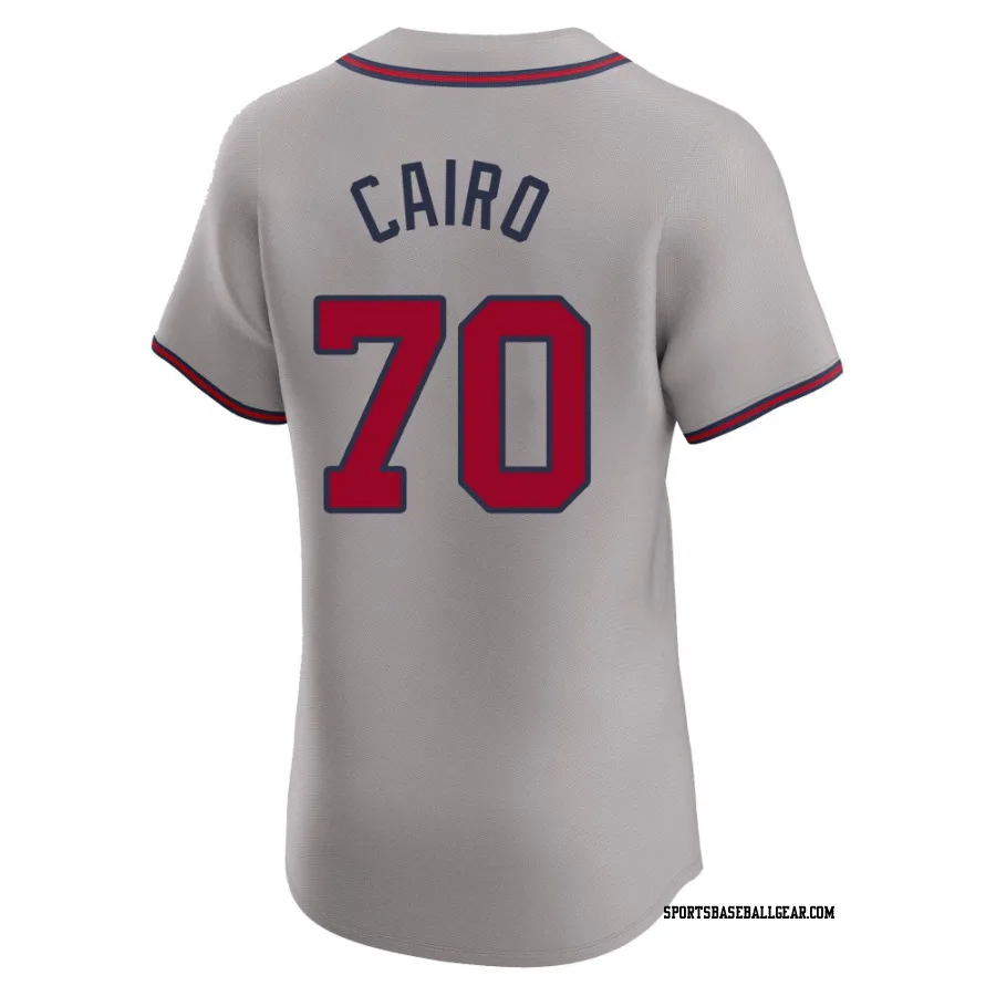 Get the Christian Cairo Men's Atlanta Braves Gray Elite Road Jersey, showcasing the latest design and premium quality for dedicated fans. Elevate your baseball wardrobe now!