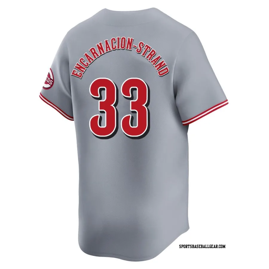 Get the Christian Encarnacion-Strand Men's Cincinnati Reds Gray Limited Away Jersey, showcasing the latest design and premium quality for dedicated fans. Elevate your baseball wardrobe now!