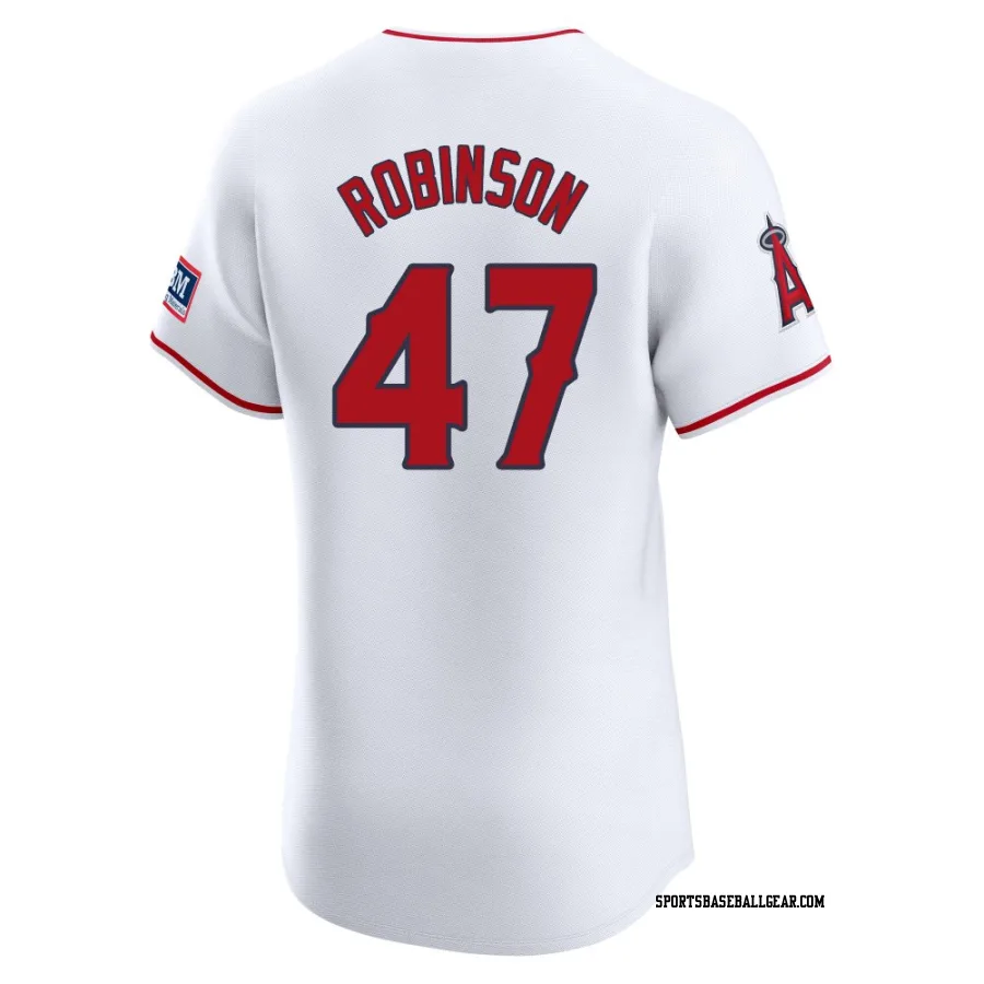 Get the Chuckie Robinson Men's Los Angeles Angels White Elite Home Patch Jersey, showcasing the latest design and premium quality for dedicated fans. Elevate your baseball wardrobe now!