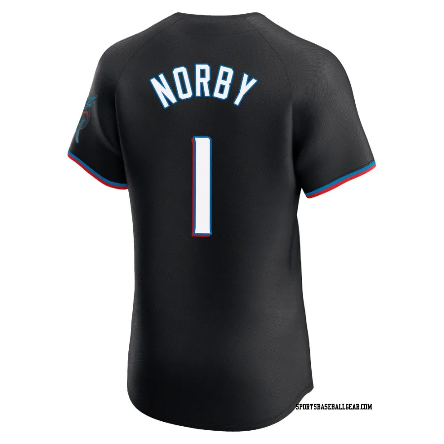 Get the Connor Norby Men's Miami Marlins Black Elite Alternate Vapor Premier Jersey, showcasing the latest design and premium quality for dedicated fans. Elevate your baseball wardrobe now!