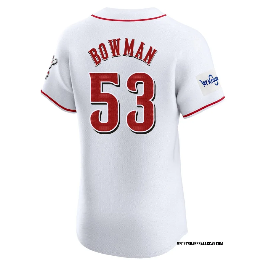 Cooper Bowman Men's Cincinnati Reds White Elite Home Patch Jersey