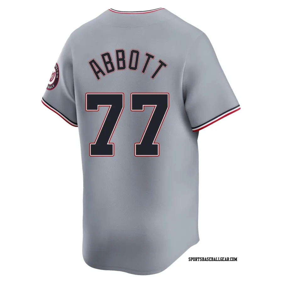Get the Cory Abbott Men's Washington Nationals Gray Limited Road Jersey, showcasing the latest design and premium quality for dedicated fans. Elevate your baseball wardrobe now!