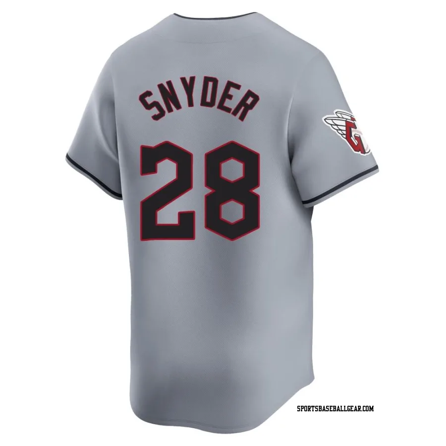 Get the Cory Snyder Men's Cleveland Guardians Gray Limited Road Jersey, showcasing the latest design and premium quality for dedicated fans. Elevate your baseball wardrobe now!