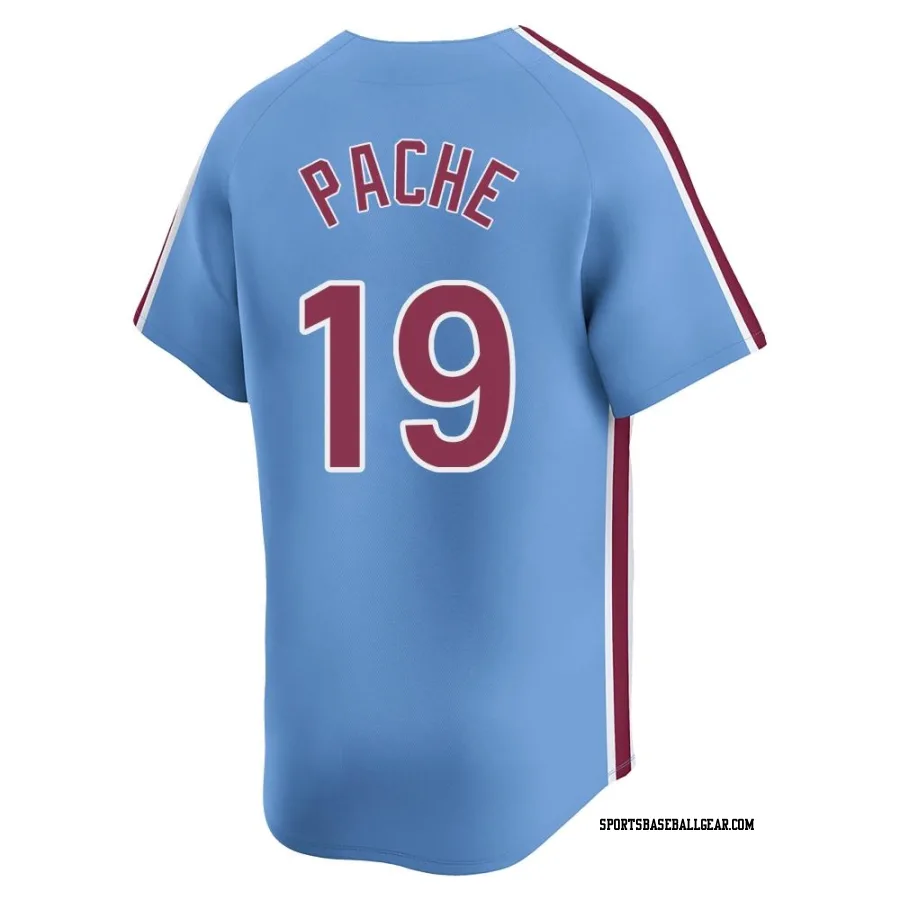 Get the Cristian Pache Men's Philadelphia Phillies Light Blue Limited Alternate Jersey, showcasing the latest design and premium quality for dedicated fans. Elevate your baseball wardrobe now!