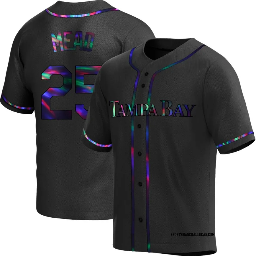 Get the Curtis Mead Men's Tampa Bay Rays Black Golden Replica Alternate Jersey, showcasing the latest design and premium quality for dedicated fans. Elevate your baseball wardrobe now!