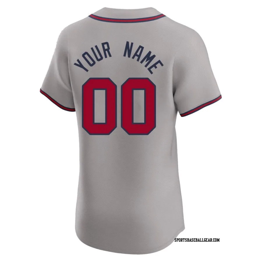 Get the Custom Men's Atlanta Braves Gray Elite Road Jersey, showcasing the latest design and premium quality for dedicated fans. Elevate your baseball wardrobe now!