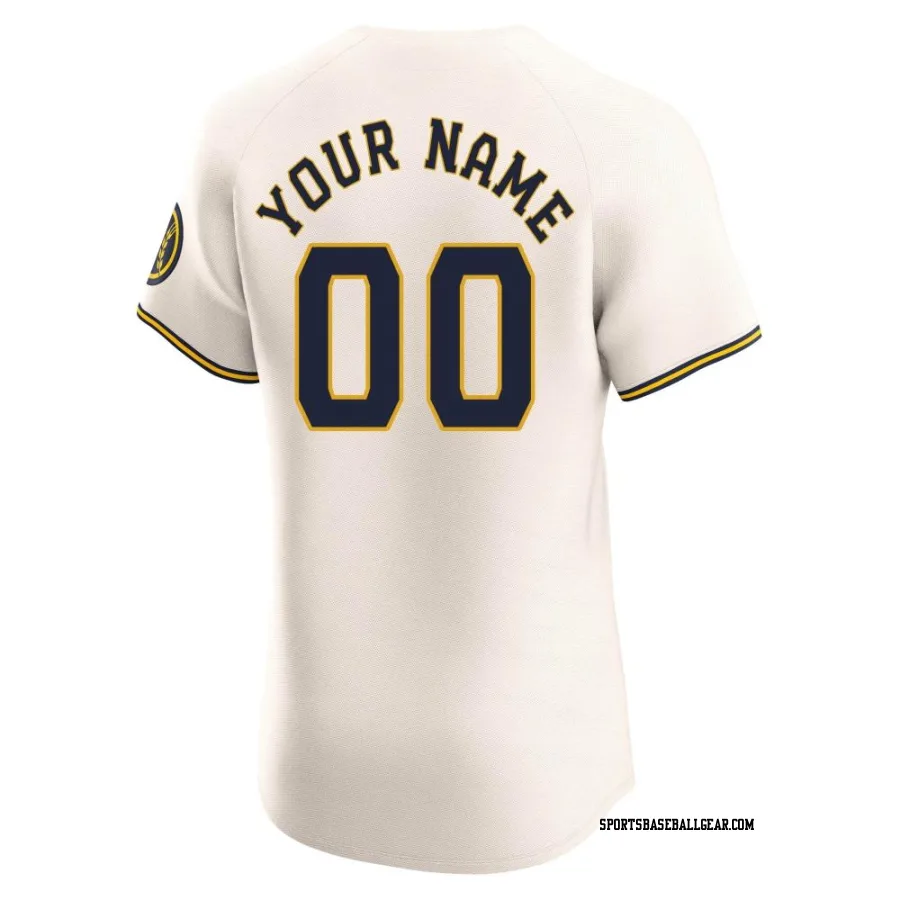 Custom Men's Milwaukee Brewers Cream Elite Home Jersey