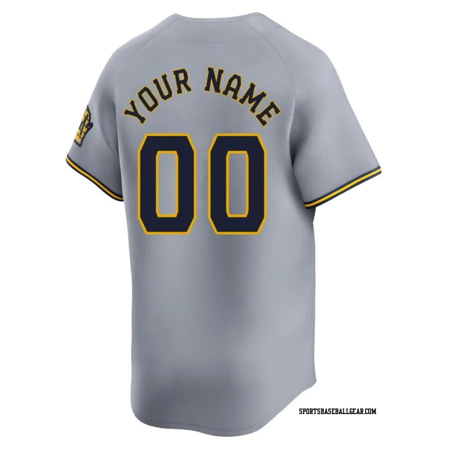 Get the Custom Men's Milwaukee Brewers Gray Limited Away Jersey, showcasing the latest design and premium quality for dedicated fans. Elevate your baseball wardrobe now!