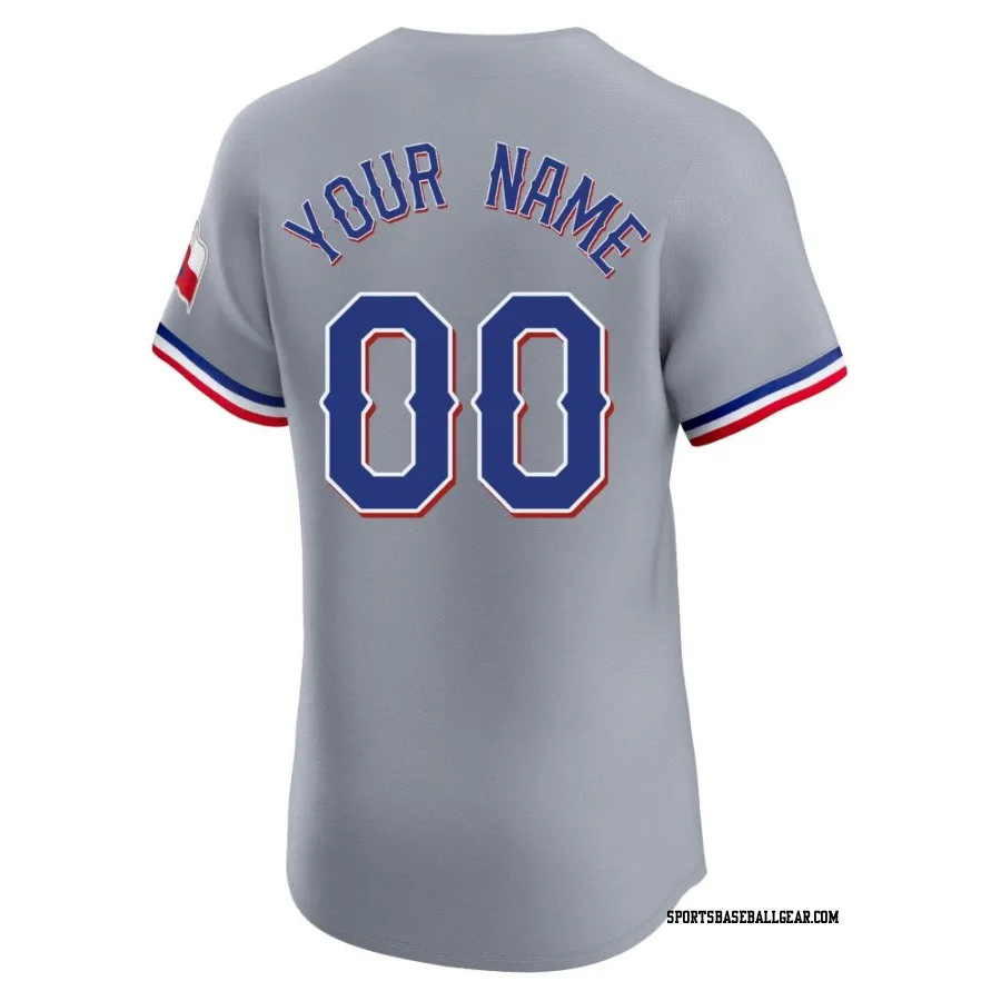 Get the Custom Men's Texas Rangers Gray Elite Road Jersey, showcasing the latest design and premium quality for dedicated fans. Elevate your baseball wardrobe now!