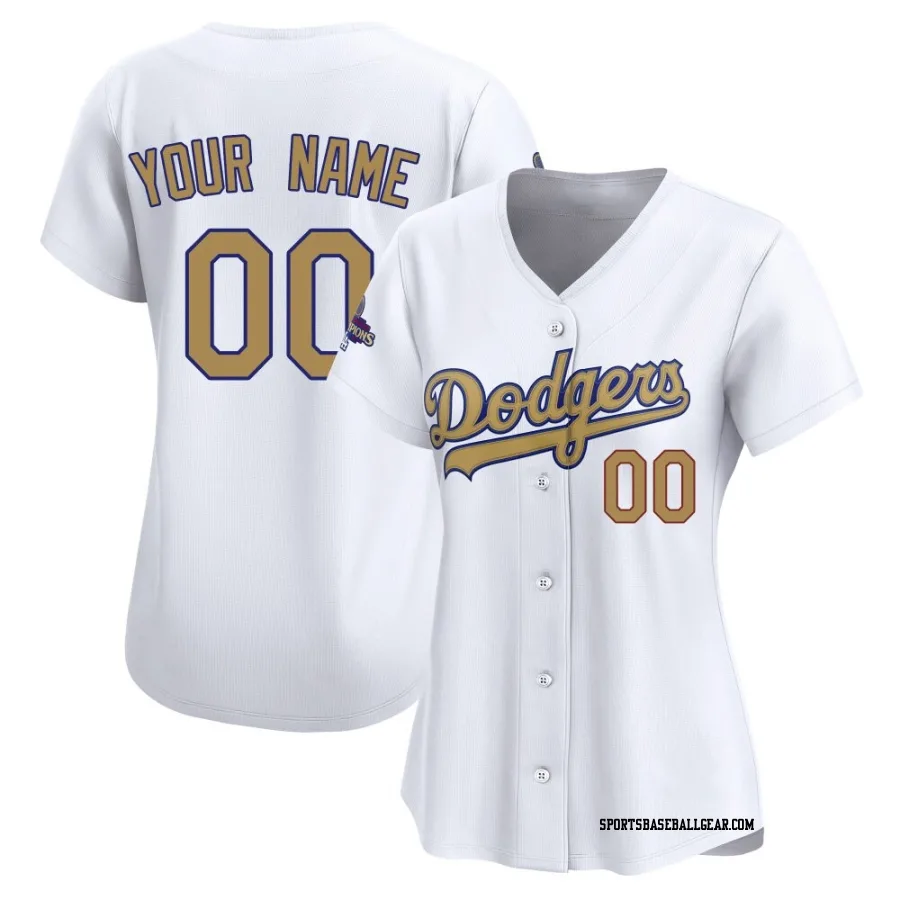 Get the Custom Women's Los Angeles Dodgers Gold Limited White 2025 Collection Jersey, showcasing the latest design and premium quality for dedicated fans. Elevate your baseball wardrobe now!