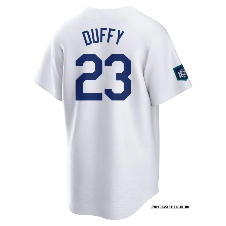 Get the Danny Duffy Men's Los Angeles Dodgers White Replica 2024 World Tour Seoul Series Home Jersey, showcasing the latest design and premium quality for dedicated fans. Elevate your baseball wardrobe now!
