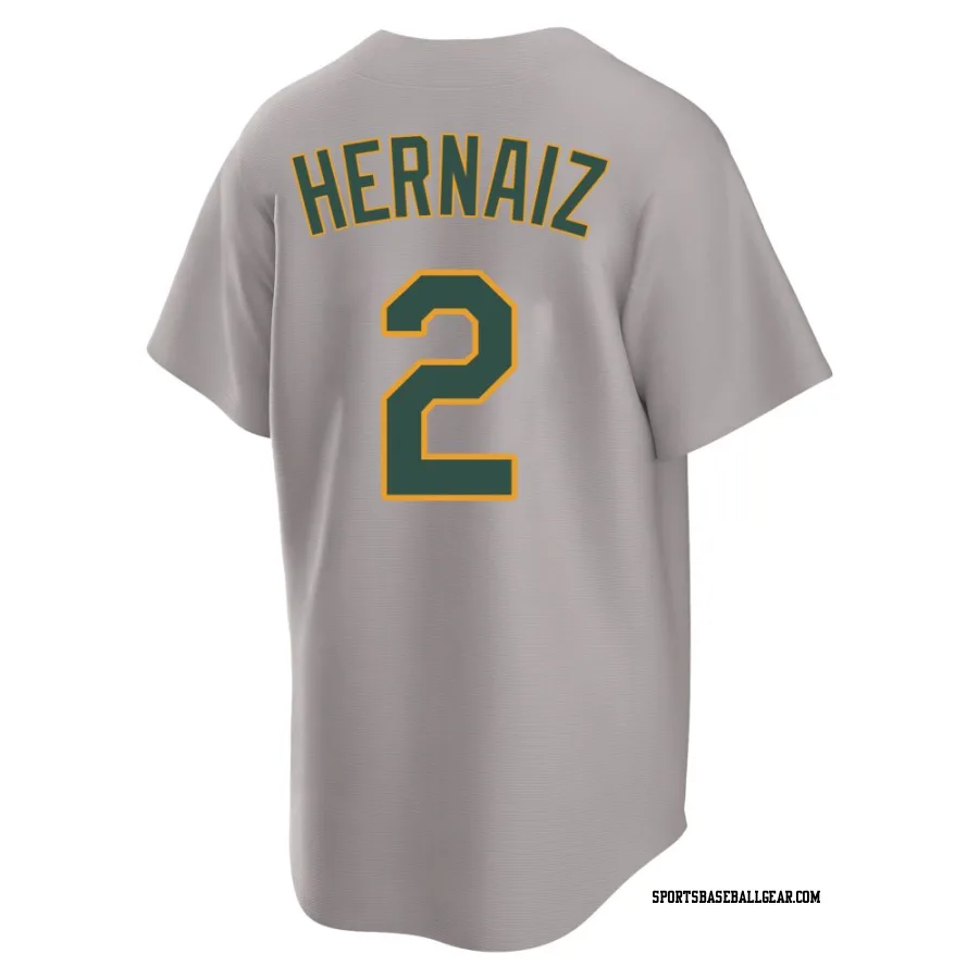 Get the Darell Hernaiz Men's Oakland Athletics Gray Replica Away 2.0 Jersey, showcasing the latest design and premium quality for dedicated fans. Elevate your baseball wardrobe now!