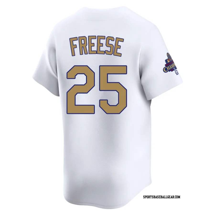 Get the David Freese Youth Los Angeles Dodgers Gold Limited White 2025 Collection Jersey, showcasing the latest design and premium quality for dedicated fans. Elevate your baseball wardrobe now!