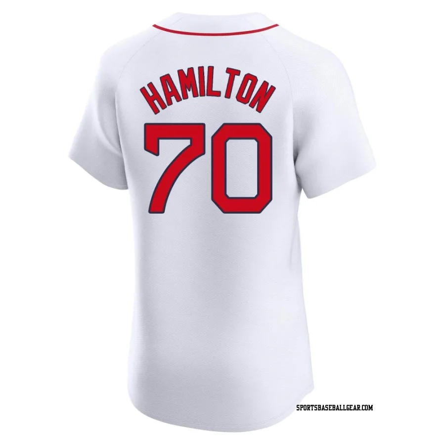 Get the David Hamilton Men's Boston Red Sox White Elite Home Jersey, showcasing the latest design and premium quality for dedicated fans. Elevate your baseball wardrobe now!