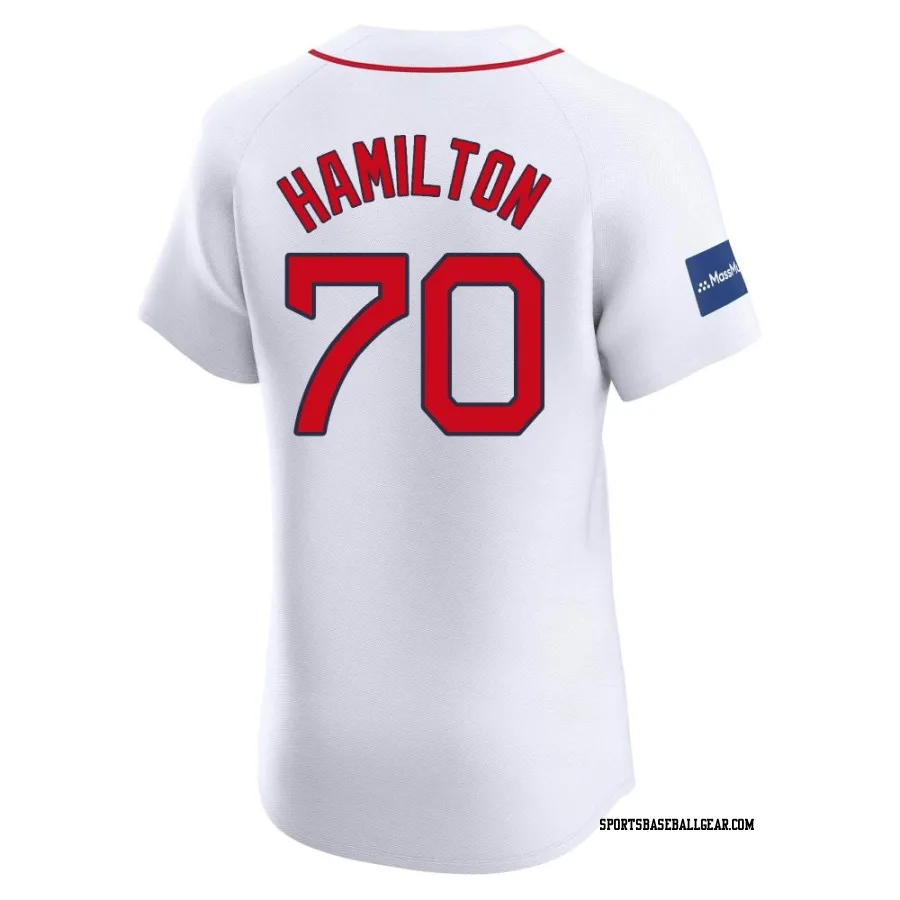 Get the David Hamilton Men's Boston Red Sox White Elite Home Patch Jersey, showcasing the latest design and premium quality for dedicated fans. Elevate your baseball wardrobe now!