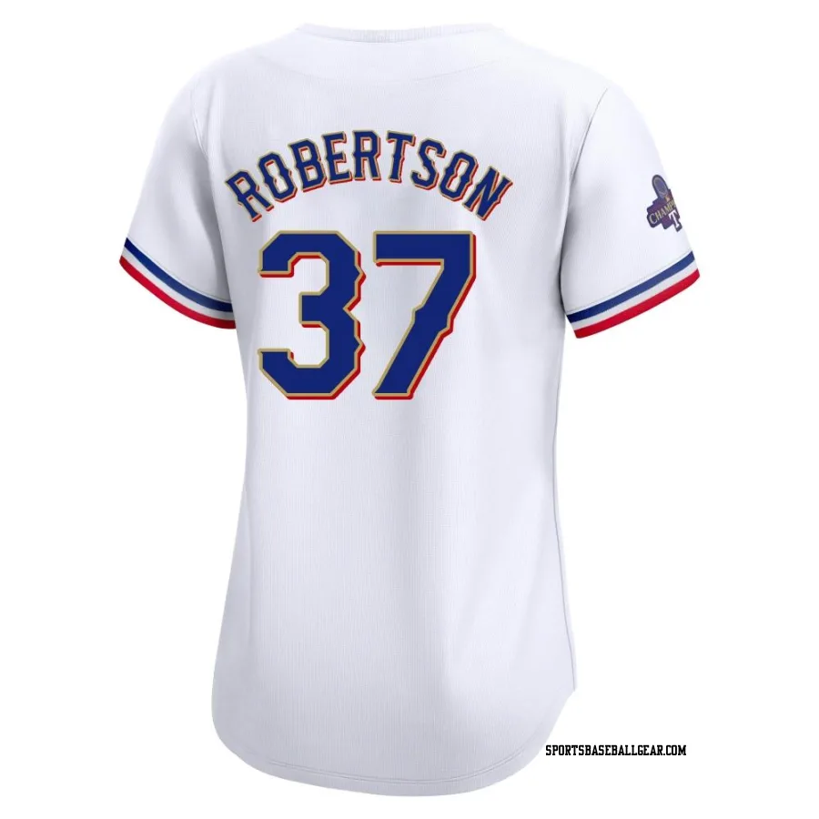Get the David Robertson Women's Texas Rangers Gold Limited White 2024 Collection Jersey, showcasing the latest design and premium quality for dedicated fans. Elevate your baseball wardrobe now!