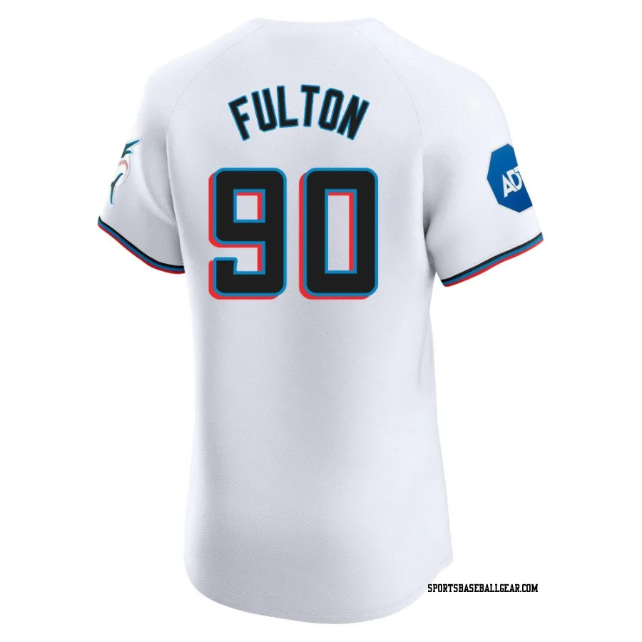 Get the Daxton Fulton Men's Miami Marlins White Elite Home Patch Jersey, showcasing the latest design and premium quality for dedicated fans. Elevate your baseball wardrobe now!