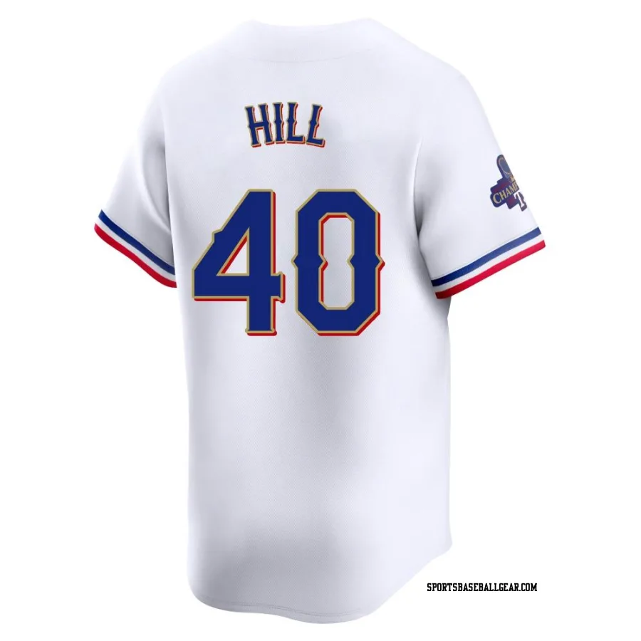 Get the Derek Hill Men's Texas Rangers Gold Limited White 2024 Collection Jersey, showcasing the latest design and premium quality for dedicated fans. Elevate your baseball wardrobe now!