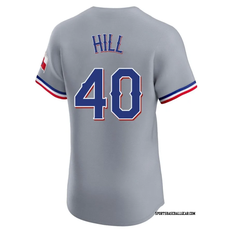 Get the Derek Hill Men's Texas Rangers Gray Elite Road Jersey, showcasing the latest design and premium quality for dedicated fans. Elevate your baseball wardrobe now!