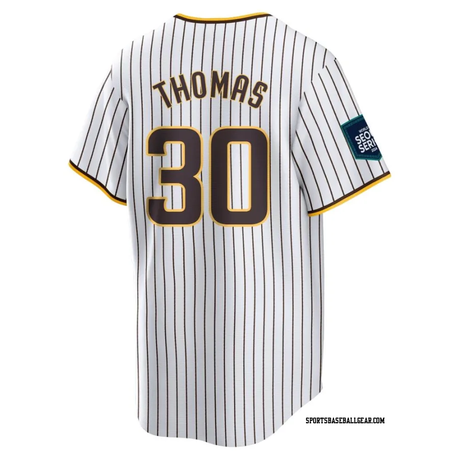 Get the Derrel Thomas Youth San Diego Padres White Replica 2024 World Tour Seoul Series Home Jersey, showcasing the latest design and premium quality for dedicated fans. Elevate your baseball wardrobe now!