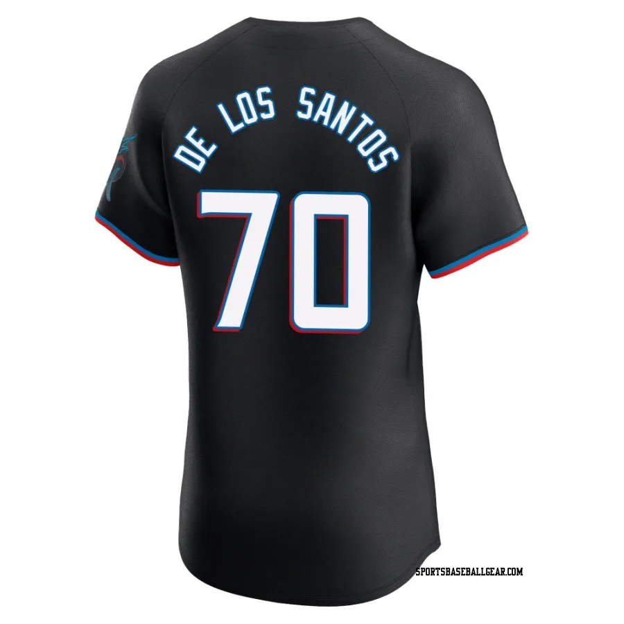 Get the Deyvison De Los Santos Men's Miami Marlins Black Elite Alternate Vapor Premier Jersey, showcasing the latest design and premium quality for dedicated fans. Elevate your baseball wardrobe now!