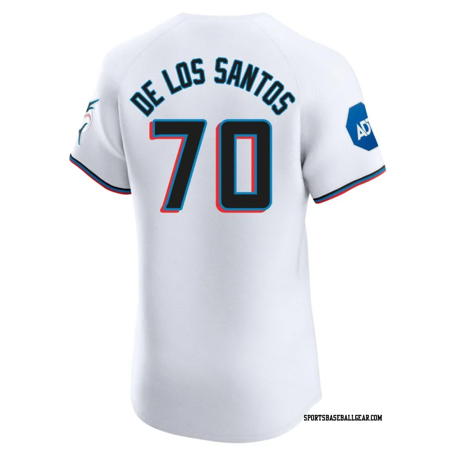 Get the Deyvison De Los Santos Men's Miami Marlins White Elite Home Patch Jersey, showcasing the latest design and premium quality for dedicated fans. Elevate your baseball wardrobe now!