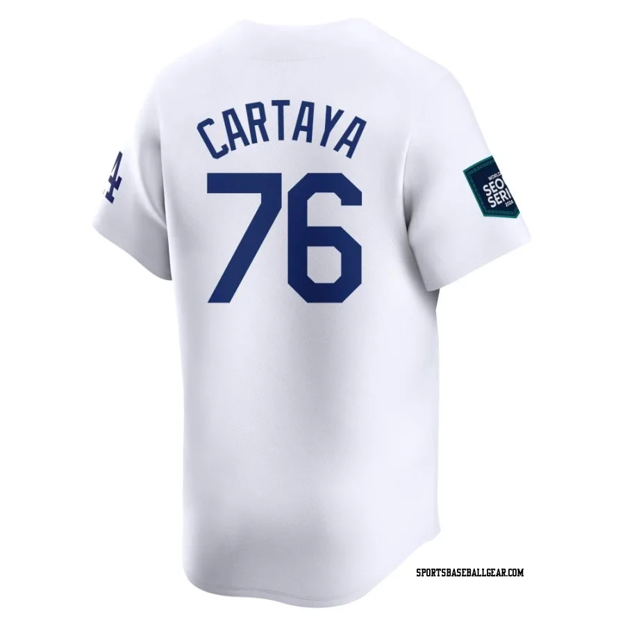 Get the Diego Cartaya Youth Los Angeles Dodgers White Limited 2024 World Tour Seoul Series Home Jersey, showcasing the latest design and premium quality for dedicated fans. Elevate your baseball wardrobe now!
