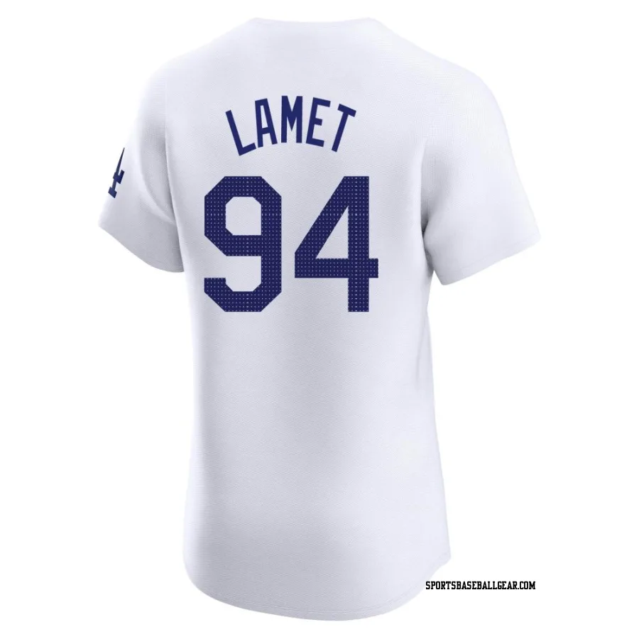 Get the Dinelson Lamet Men's Los Angeles Dodgers White Elite Home Jersey, showcasing the latest design and premium quality for dedicated fans. Elevate your baseball wardrobe now!
