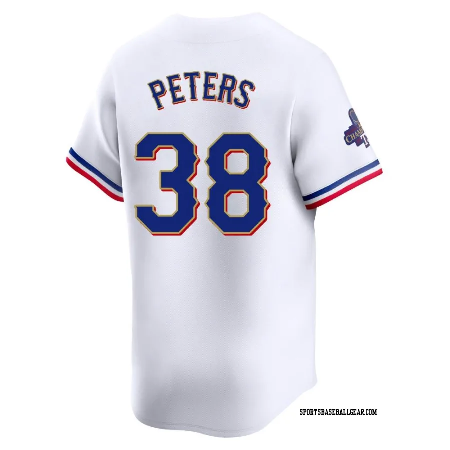 Get the DJ Peters Men's Texas Rangers Gold Limited White 2024 Collection Jersey, showcasing the latest design and premium quality for dedicated fans. Elevate your baseball wardrobe now!