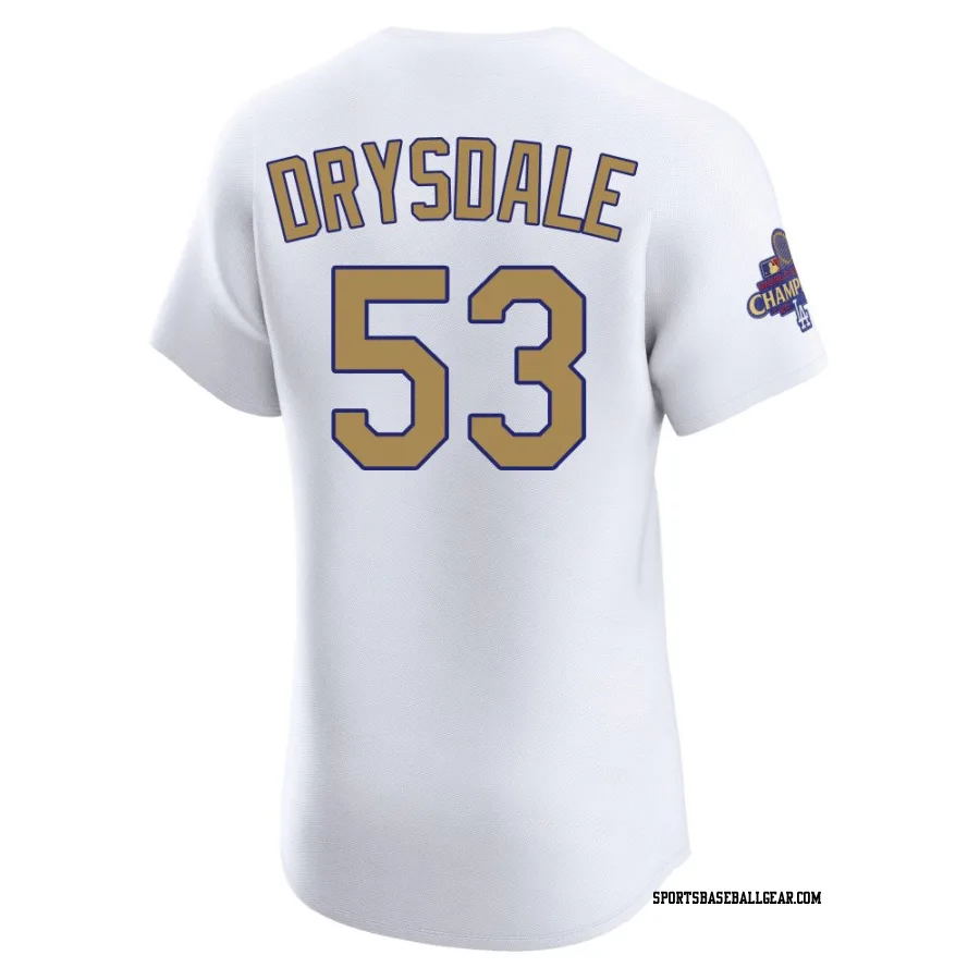 Don Drysdale Men's Los Angeles Dodgers Gold Elite White 2025 Collection Jersey