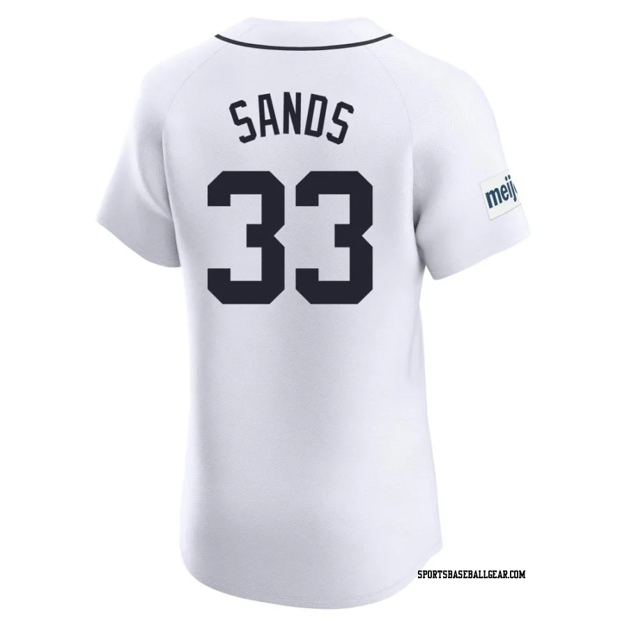 Get the Donny Sands Men's Detroit Tigers White Elite Home Patch Jersey, showcasing the latest design and premium quality for dedicated fans. Elevate your baseball wardrobe now!