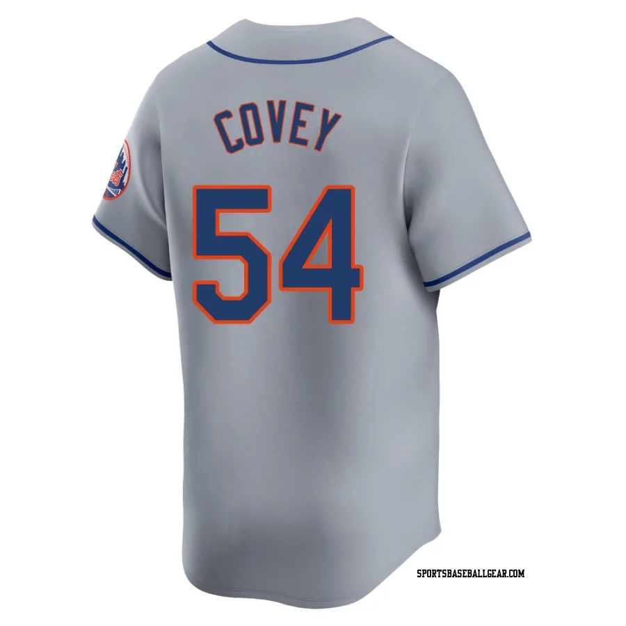 Get the Dylan Covey Youth New York Mets Gray Limited Away Jersey, showcasing the latest design and premium quality for dedicated fans. Elevate your baseball wardrobe now!