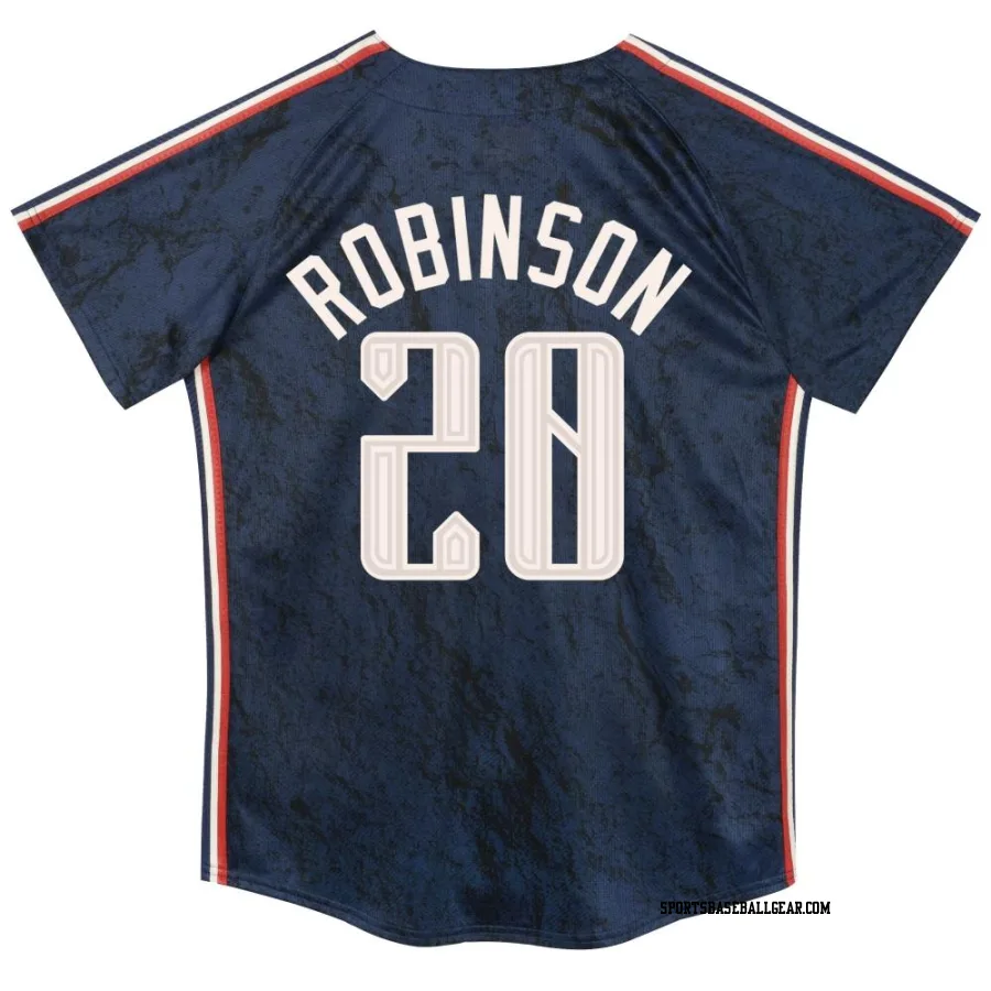 Get the Eddie Robinson Toddler Cleveland Guardians Navy Limited Preschool & 2024 City Connect Jersey, showcasing the latest design and premium quality for dedicated fans. Elevate your baseball wardrobe now!