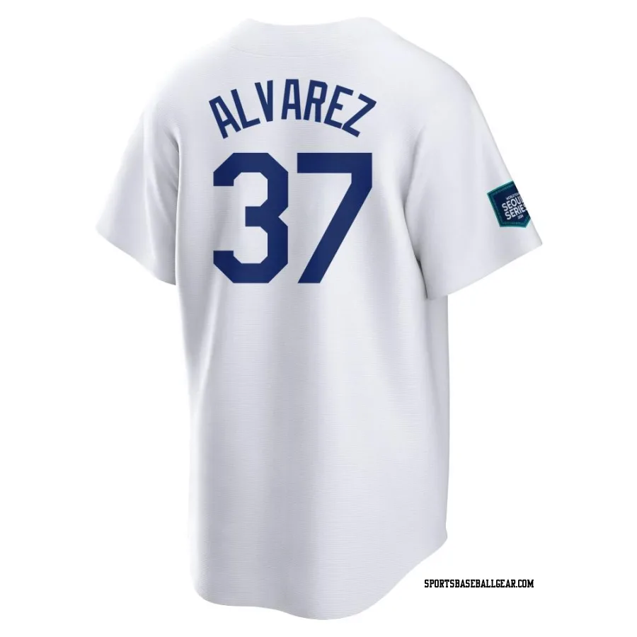 Get the Eddy Alvarez Youth Los Angeles Dodgers White Replica 2024 World Tour Seoul Series Home Jersey, showcasing the latest design and premium quality for dedicated fans. Elevate your baseball wardrobe now!