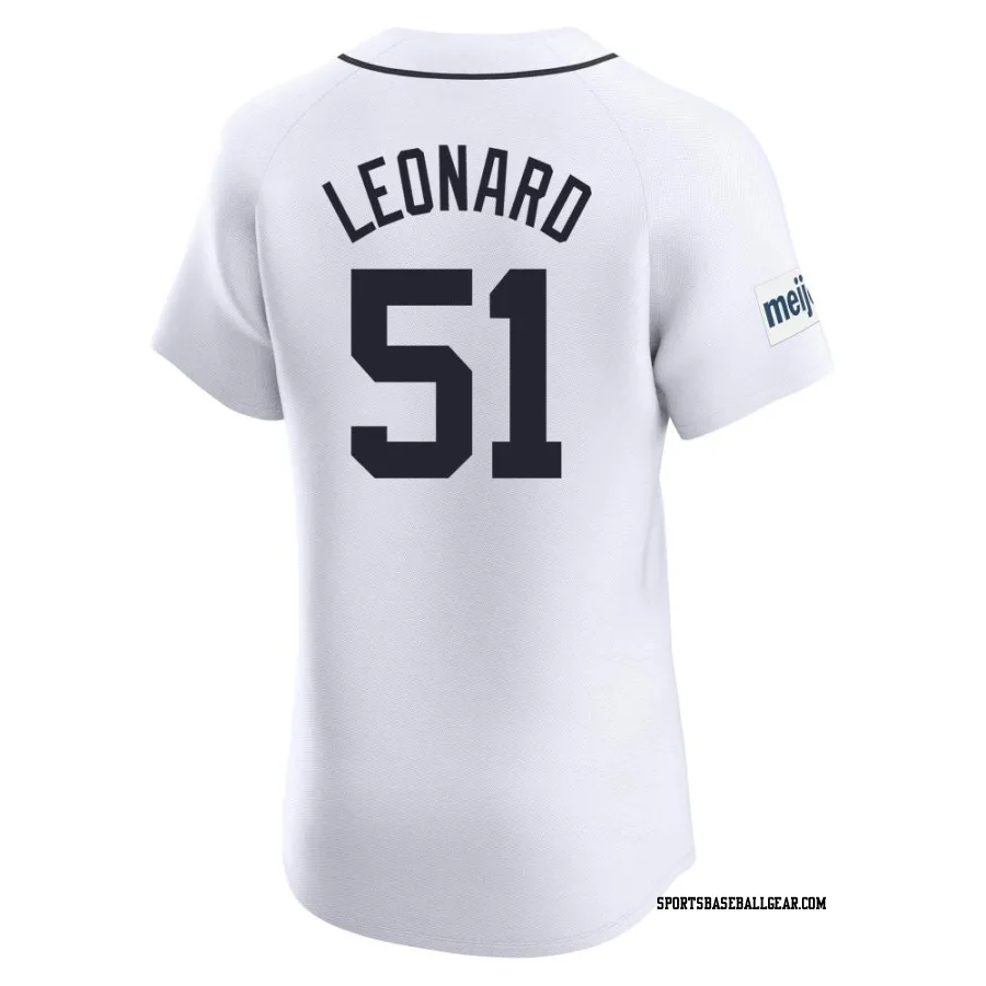 Eddys Leonard Men's Detroit Tigers White Elite Home Patch Jersey