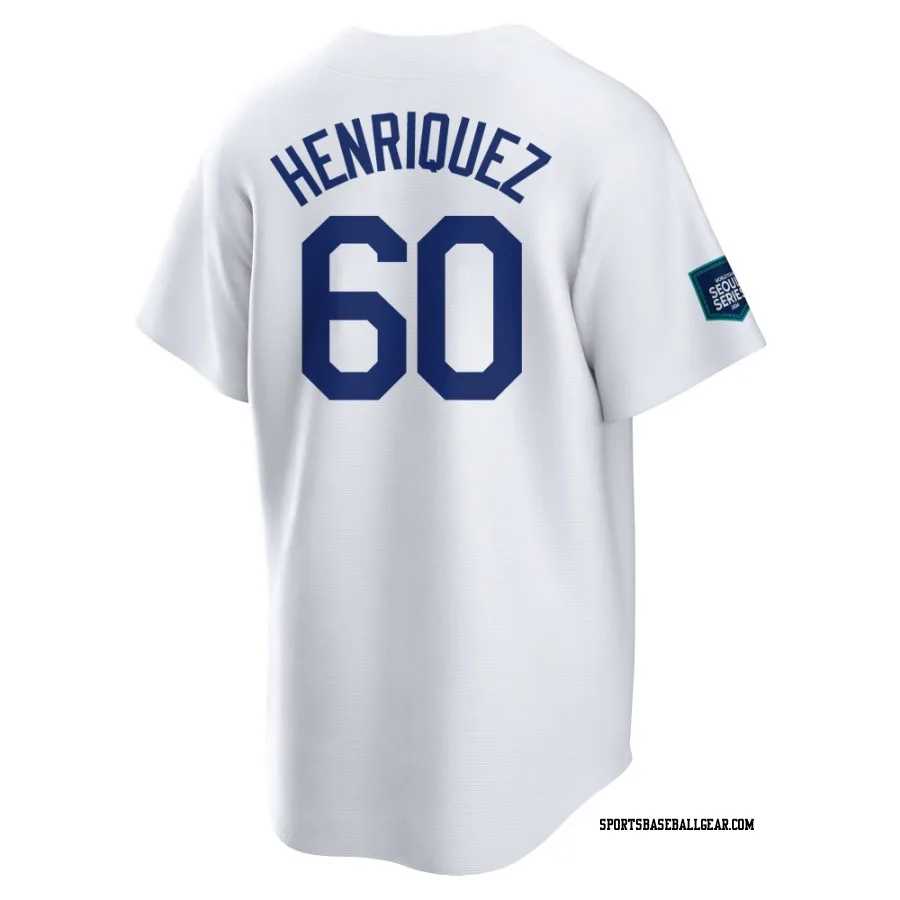 Get the Edgardo Henriquez Men's Los Angeles Dodgers White Replica 2024 World Tour Seoul Series Home Jersey, showcasing the latest design and premium quality for dedicated fans. Elevate your baseball wardrobe now!