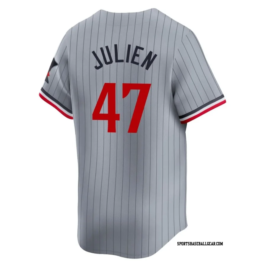 Get the Edouard Julien Youth Minnesota Twins Gray Limited Road Jersey, showcasing the latest design and premium quality for dedicated fans. Elevate your baseball wardrobe now!