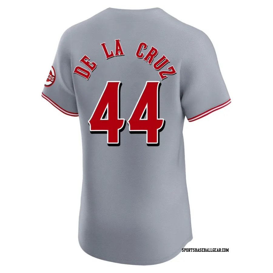 Get the Elly De La Cruz Men's Cincinnati Reds Gray Elite Road Jersey, showcasing the latest design and premium quality for dedicated fans. Elevate your baseball wardrobe now!