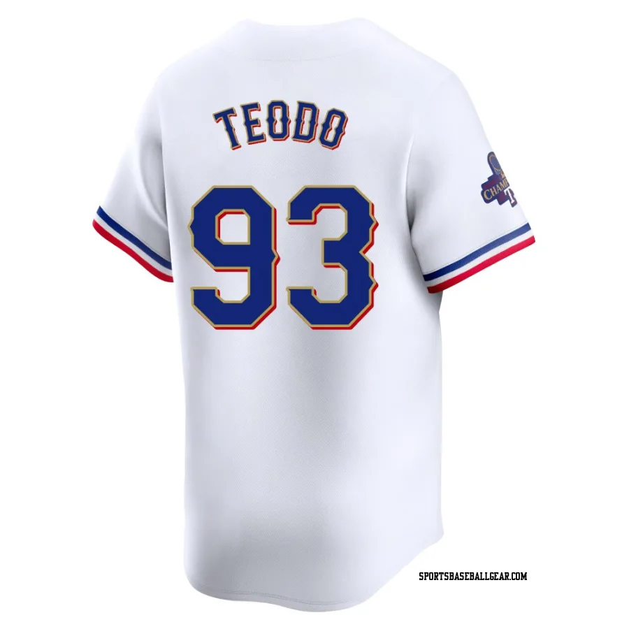 Emiliano Teodo Youth Texas Rangers Gold Limited White 2024 Collection Jersey