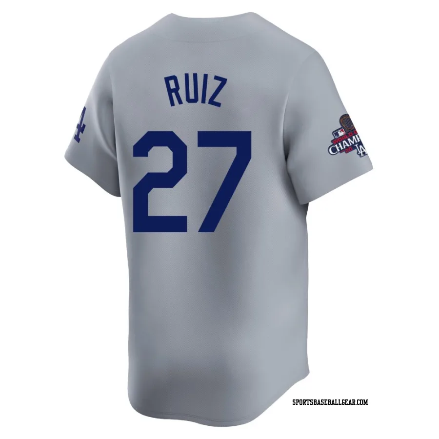Get the Esteury Ruiz Men's Los Angeles Dodgers Gray Limited Away World Series Champions Jersey, showcasing the latest design and premium quality for dedicated fans. Elevate your baseball wardrobe now!