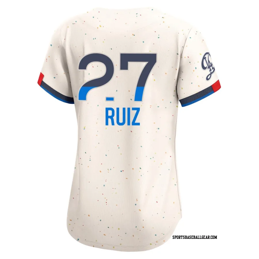 Get the Esteury Ruiz Women's Los Angeles Dodgers Cream Limited 2024 City Connect Jersey, showcasing the latest design and premium quality for dedicated fans. Elevate your baseball wardrobe now!
