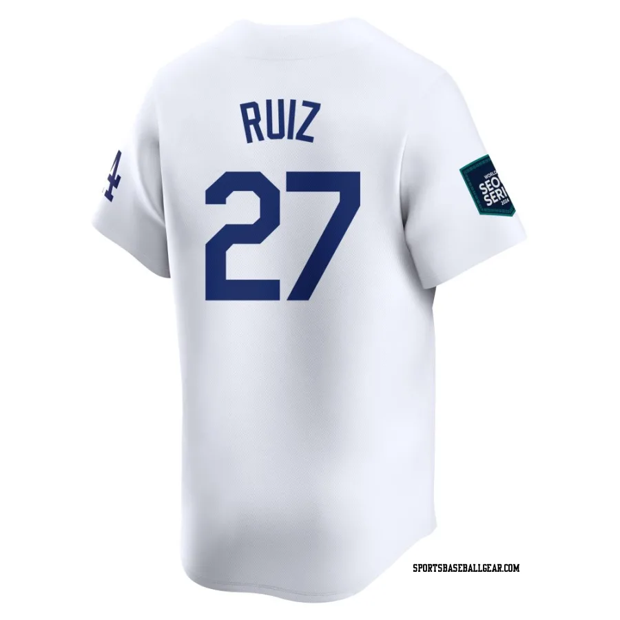 Get the Esteury Ruiz Youth Los Angeles Dodgers White Limited 2024 World Tour Seoul Series Home Jersey, showcasing the latest design and premium quality for dedicated fans. Elevate your baseball wardrobe now!