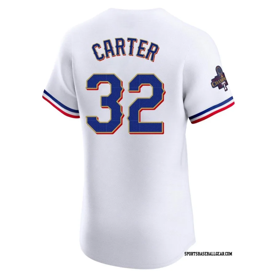 Evan Carter Men's Texas Rangers Gold Elite White 2024 Collection Jersey