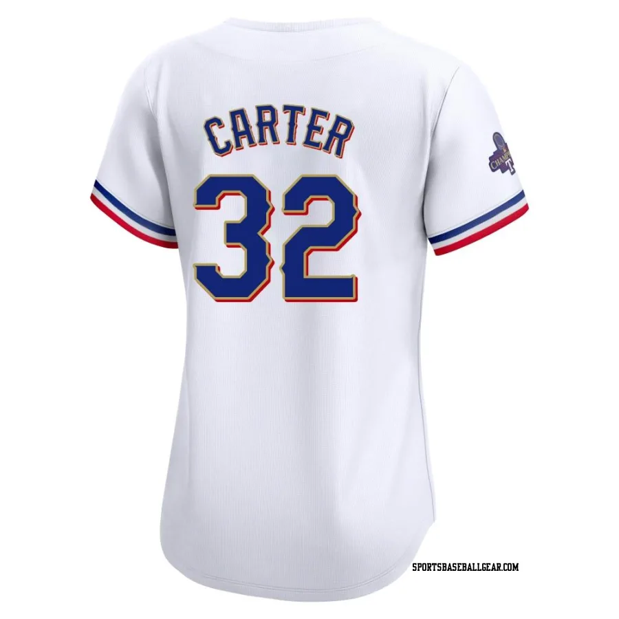 Get the Evan Carter Women's Texas Rangers Gold Limited White 2024 Collection Jersey, showcasing the latest design and premium quality for dedicated fans. Elevate your baseball wardrobe now!