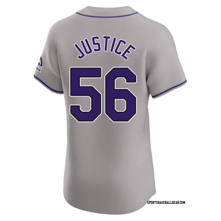 Get the Evan Justice Men's Colorado Rockies Gray Elite Road Jersey, showcasing the latest design and premium quality for dedicated fans. Elevate your baseball wardrobe now!